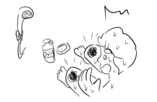 シャンプー後、自分の膝が真っ黒になっているのを見て、思わず悲鳴を上げます。