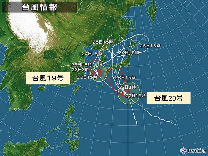 非常に強い台風20号は今後も北上し、23日の午後から24日に暴風域を伴ったまま四国から近畿に上陸、その後、西日本を縦断する恐れがあります。日本海に進んだあと進路を東よりに変えて、25日にかけて北日本に近づく可能性もあります。