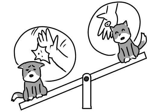 これをペットに置き換えると、“手から美味しいフードをもらった”と“手で叩かれて嫌な思いをした”では、決して釣り合わず、「手」への嫌悪感・恐怖感が、(状況と合わせ)記憶として深く、長く残ることになります。