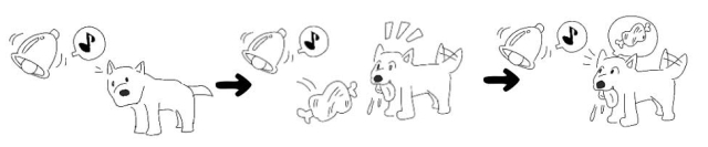 これは条件反射とも呼ばれるもので、最初はベルの音という動物にとって何でもなかった中性刺激(生理的反応を引き起こさないような刺激)が、エサという生きるために必要な生得刺激(生まれつきある本能的な刺激)と対提示されることで、その刺激が犬にとって意味のある習得的刺激(条件刺激ともいい、学習によって得た刺激)となり記憶されていくのです。