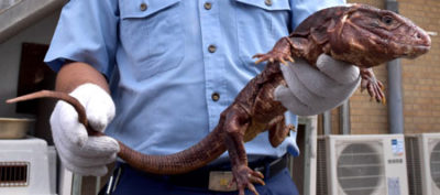 京都府警では毎年約1千件の届け出があり、中には路上を歩いている体長80センチの「レッドテグー」(南米パラグアイやアルゼンチン原産のトカゲ)を保護したこともあるそうです。