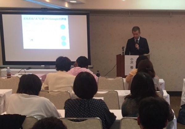そしてもうひとつのセミナーは、【検索エンジン対策の基礎とGoogleの最新動向】について、ウェブラボ株式会社の小沢修先生にお話しいただきました。小沢先生のプロフィールはこちら