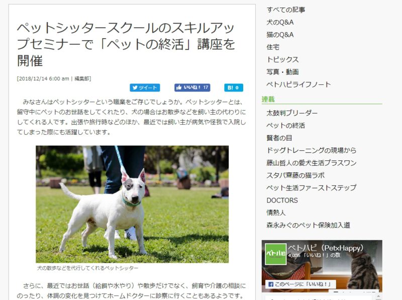 そんな、毎年開催される『認定ペットシッターの集い』セミナーの様子が、ペット情報サイト『ペトハピ』で紹介されました。