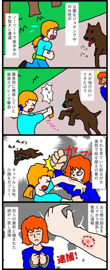 しかし、せっかく護身用のスプレーを持っているのだから、襲ってくる飼主に噴射すればよかったのに・・