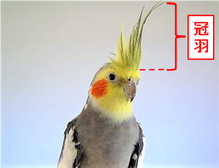 冠羽とは、「かんう」または「かんむりばね」と呼ばれ、オカメインコをはじめオウム科等の頭頂部にある長い羽毛のことです。