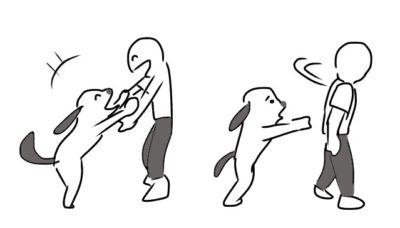 このとき「痛い!」と声をあげると、その声音が「正の罰」になる恐れがあります。犬の「噛む」という自然な行為に罰を与えることになり、良好な関係を築くうえで好ましくありません(ただ遊びが中断されるだけなら「負の罰」)。・「嫌なこと」が起きる・・・正の罰