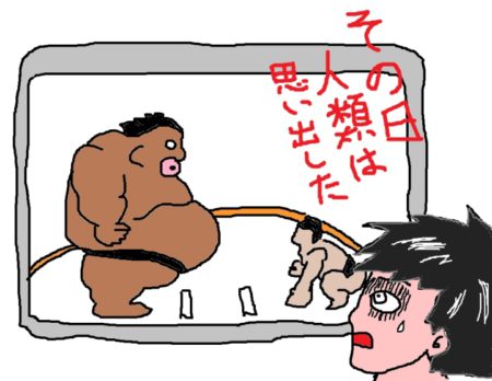 こんなの反則だ・・こんなデカい力士に勝てるわけがない・・と。