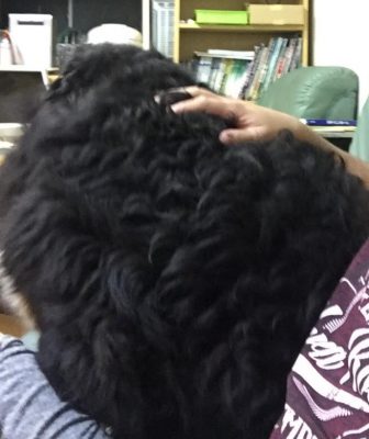 実家に帰ると、毎回大量のお土産(被毛)を持って帰ることになり、コロコロで落としても、洗濯をしても、すご~~く細い毛が何ヶ月も後に出てきたりして、存在アピールの強さにいつも感心する。