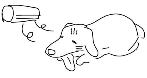 「ドッグカフェはエアコンが効いてて快適だからなー、しばらくここにいてあげよう」