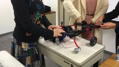 ペットの介護グッズですが、この講義ではペット用の車イスをメインにご紹介しています。