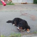 うちのバーニーズは、兄弟たちがいい年してボクシングの真似ごとをしているときも、横で木の枝をずっと噛み噛みしていたというのに・・。