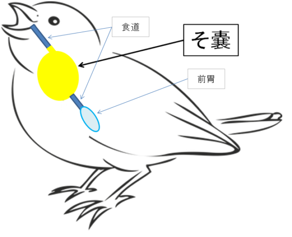 そ嚢(そのう)とは、口と胃の間にある食道が拡張し袋状になった部分のことです。