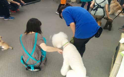 その後、生徒さん一人一人に担当犬を決めて、ワンちゃん達からハンドリングを教わっていきます。