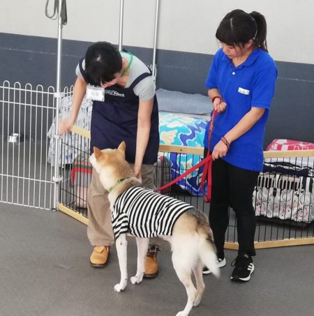 まずはワンちゃんを人や物に慣らす方法を教わります。