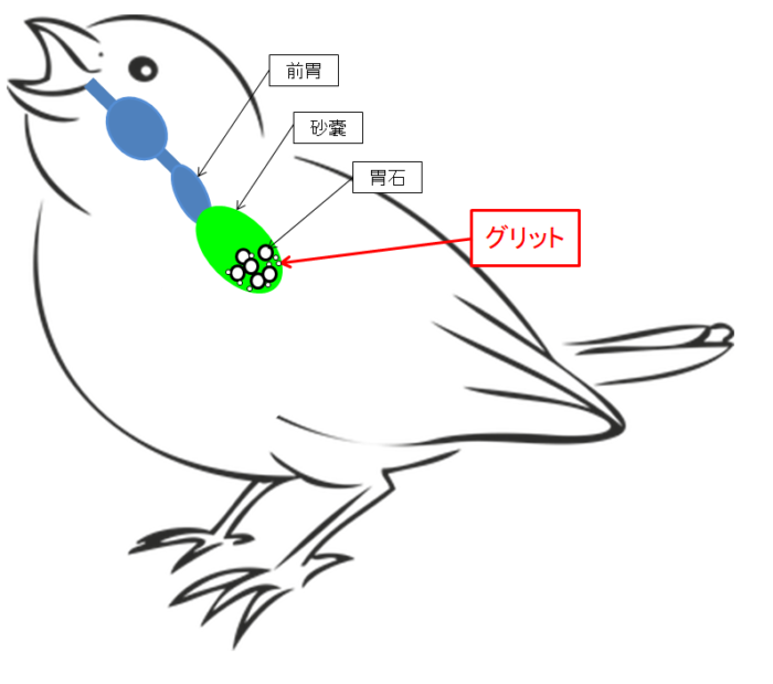 消化器官の一つである「砂嚢」の中にある砂利のことを「グリット」と呼びます。
