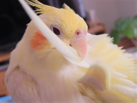 水をはじいたり、羽の汚れを防ぐ効果があると言われ、オカメインコなどでよく見られます。