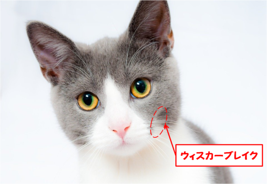 ウィスカーブレイク(Whisker break)とは、猫のウィスカーパッド(髭が生えてぷっくりふくらんだ部分)と、頬との間にある「くぼみ」のことをいいます。