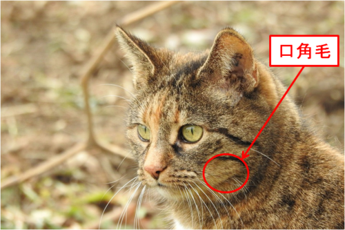 犬や猫のヒゲは感覚器官のひとつです。 口角毛(こうかくもう)とは、口の端に生えている1~2本の短い毛のことをいいます。