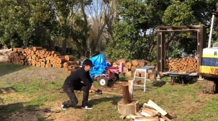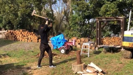そして久しぶりに実習に付き添った私は、前回同様また薪割りで漢の汗を流しました。