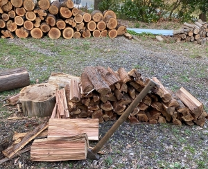 二時間ほど黙々と斧を降り続け、「鶴岡さん、これで今年の冬も越せますね」と汗をふきふき成果を主張したら、「そんなの一日分だよ(笑)」とあっさり。
