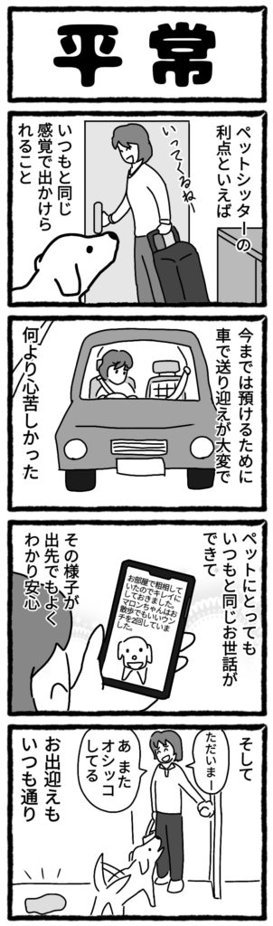 ペット四コマ漫画~その17~ ペット四コマ漫画 Tweet シェア ペットやペットシッターに関する四コマ漫画です。 警戒心の高さも猫の本能 “いつも通り”が一番安心 喜びポイントはそれぞれ 飼い主の反応に対する犬の反応の速さ(笑) 本能に翻弄される Tweet シェア