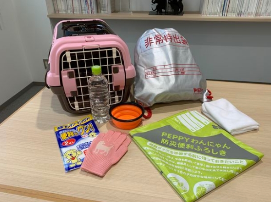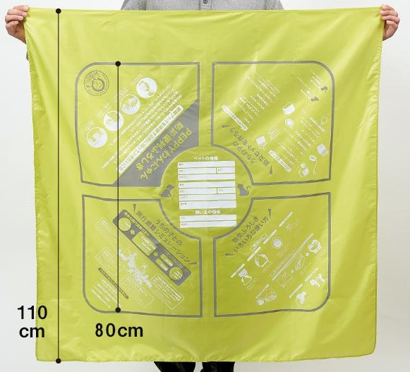 ペット用品の通販サイト『ペピイ(PEPPY)』から、一枚で8役使える「わんにゃん防災便利ふろしき」が発売されました。
