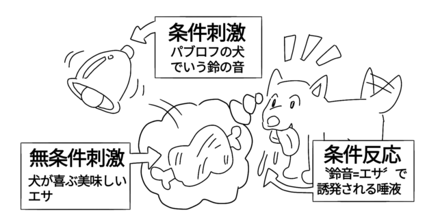 鈴の音がすれば、美味しいものが出てくるとレスポンデント条件づけされた犬に