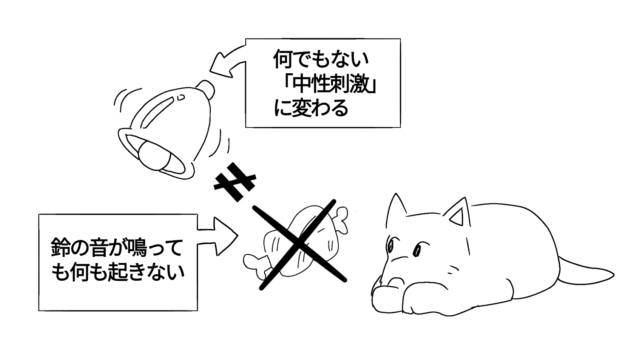 鈴の音が鳴っても何も起きない状況が繰り返し提示されることで、条件付けされた犬の生理反応がなくなっていく