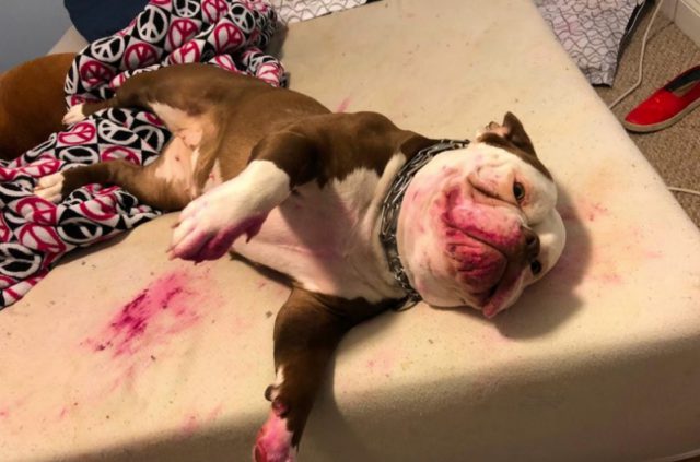 ちなみに昨年10月にはフィリピンで、メイク用の粉が入ったパッケージを見つけた3匹の犬がピンクに染まり、飼い主を仰天させた。また3月には、スイカジャムを食べて身体が赤く染まった犬が、床で死んだふりをして話題となった。