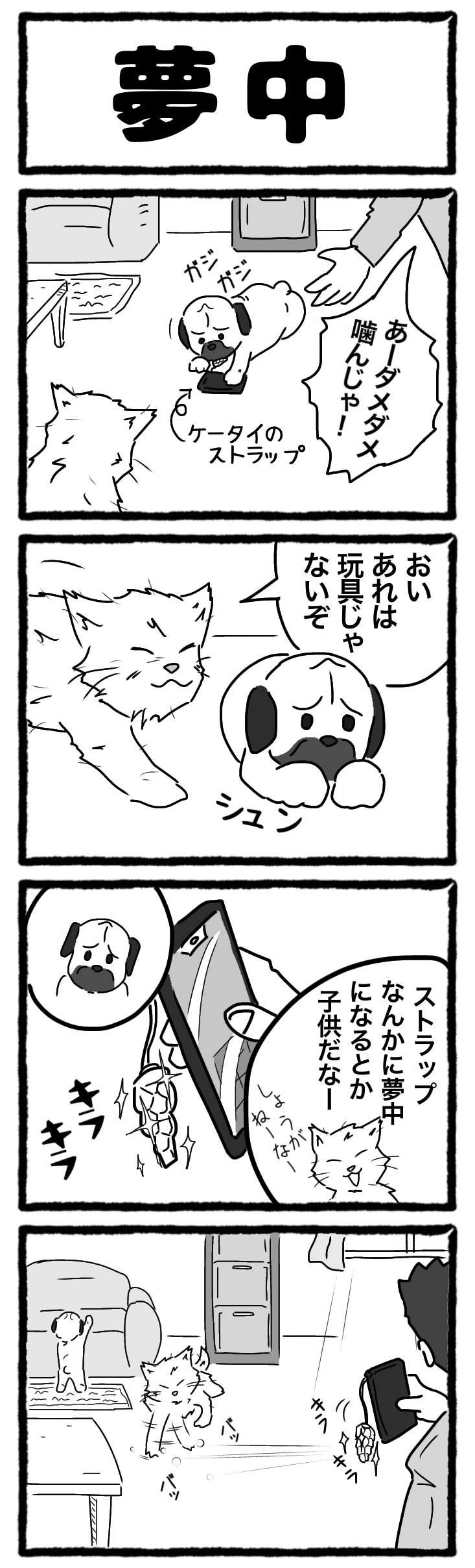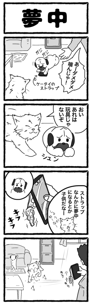 ペット四コマ漫画~その21~ ペット四コマ漫画 Tweet シェア ペット四コマ漫画~その21です。 今回と次回~その22は、『しゃべる犬猫シリーズ』のみお送り致します。 ペットを飼うと、色々な出費がかかるものです 次のチャンスに期待 噛みたい欲求と追いたい欲求 つ、、次のチャンスに期待 たまに始まる夜の一人大運動会 Tweet シェア