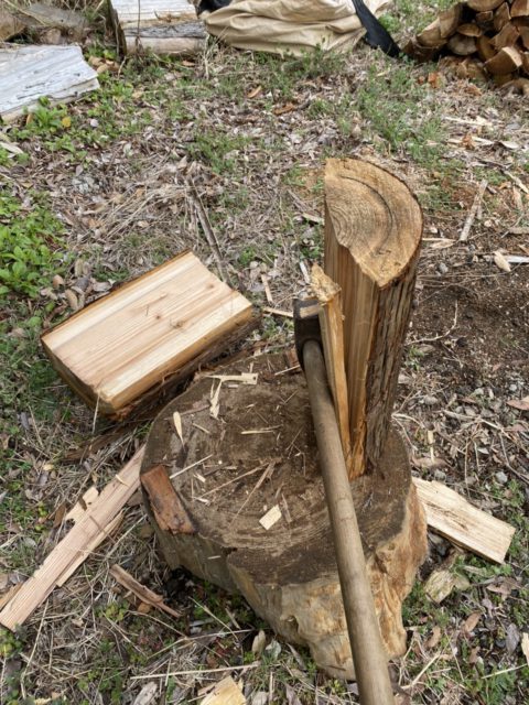 「犬のハンドリング実習Ⅱ」は千葉県木更津市の自然の素晴らしい場所で行われますので、付き添えるときは張り切って薪を割るのですが・・今日もタイピングするのがしんどいほど握力がバカになり、全身がひどい筋肉痛です・・σ(^_^;)