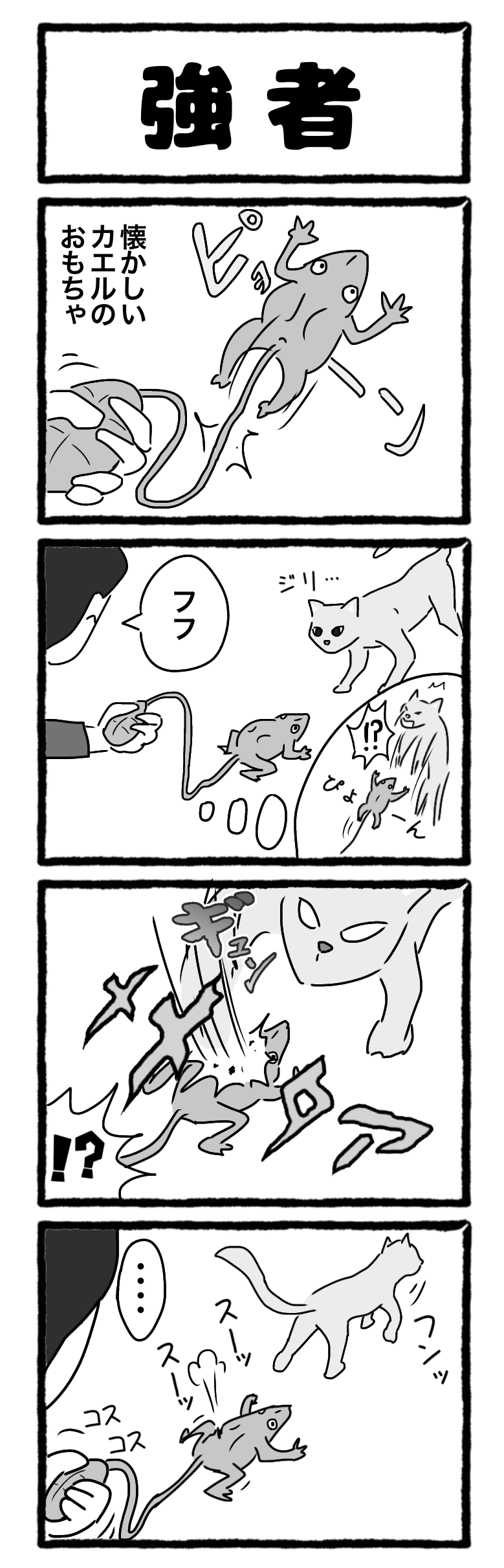 ペット四コマ漫画~その26~ ペット四コマ漫画 Tweet シェア 犬や猫、ペットにまつわる四コマ漫画です。 犬が長い棒を咥えたときのテンションの高さは見ててもウキウキしますね 捕獲したりされたりの毎日 猫の知能と運動能力をなめてはいけない 顎を乗せるくらいならいいんだけど・・(笑) つ・・強い Tweet シェア