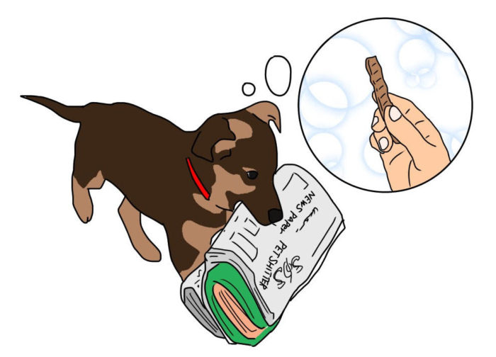 「ちょーだい」や「オフ」などの咥えているものを離すしつけは、“離した結果もっといいことが起きる(美味しいおやつと交換できる)”などの正の強化で教えていくことができます。