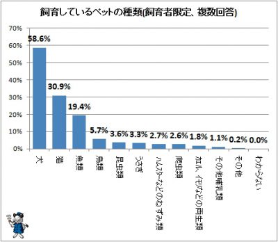 複数種類の動物を飼育する飼主が年々減少傾向にあることからも、単一のペットとなると犬や猫に台頭していったのかもしれません。