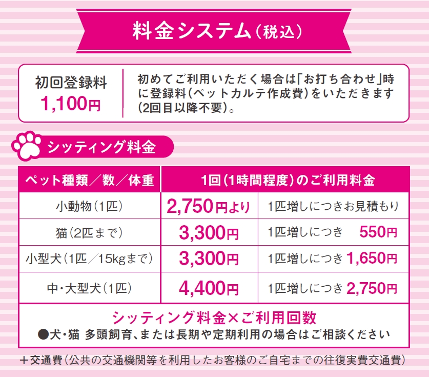 下記がペットシッターSOSのご利用料金となります。