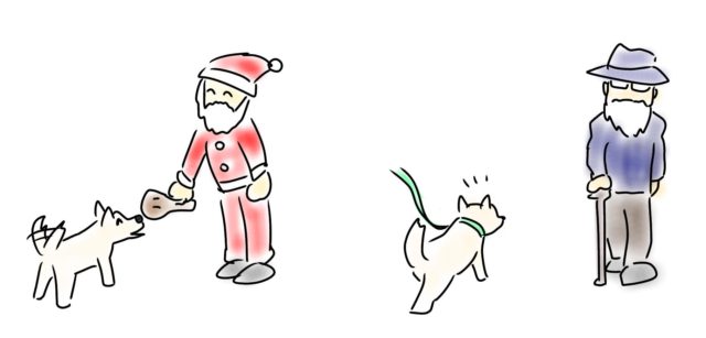 経験を学習した犬や猫は、また同じように飼主が何か食べようとすると、「またくれる」と近寄ってきます。でもノー特別ノーサンタの日だから人間があげないでいると、それはペットにとってストレスとなり、場合によっては要求吠えに転じることもあります。