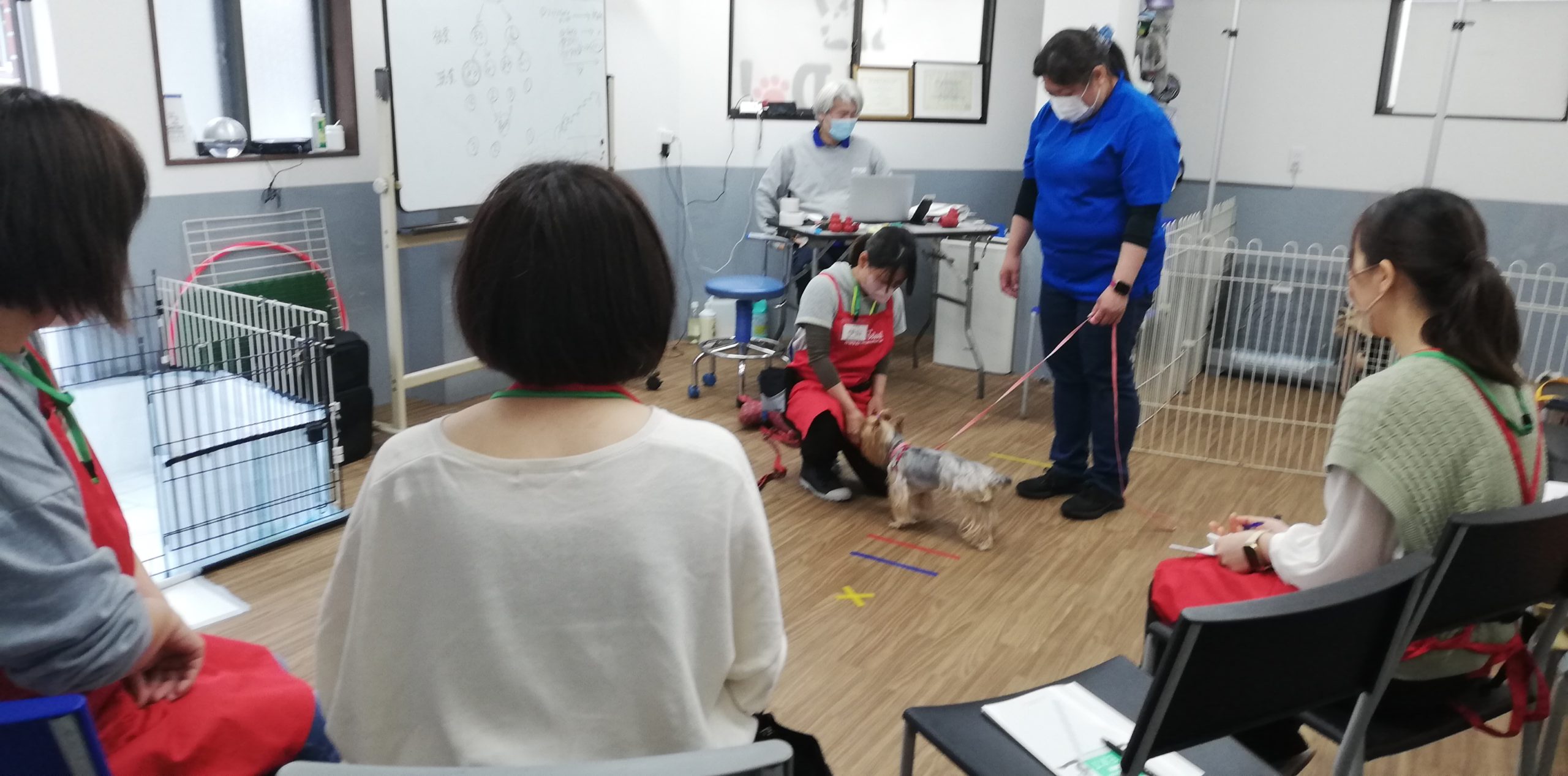 さて、なんとか雨に濡れずにお散歩から帰ってきた後は、室内で実習の続きです。