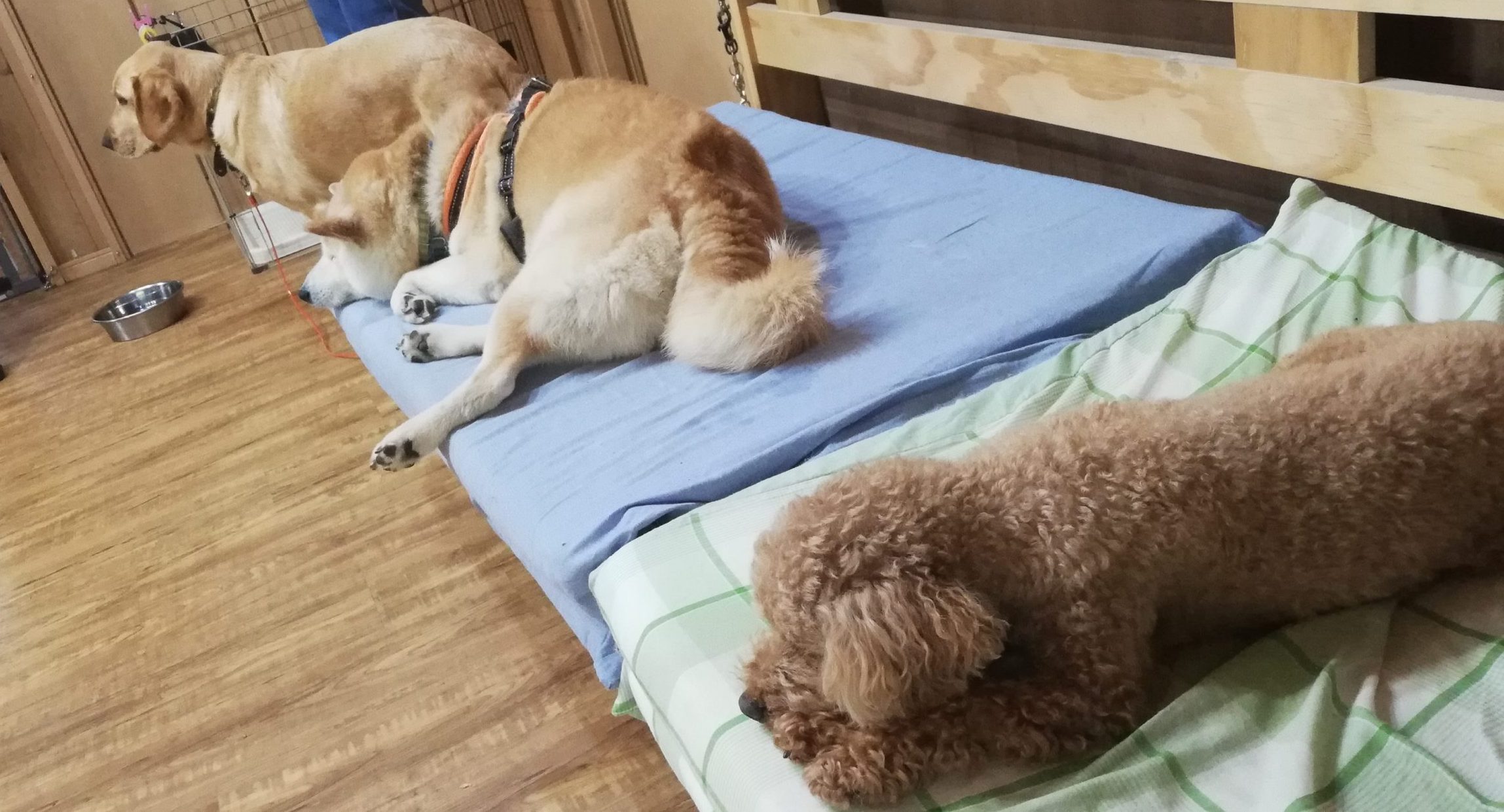 ご協力いただいているワンちゃん達は疲れたのか、ソファーや床で休憩です。