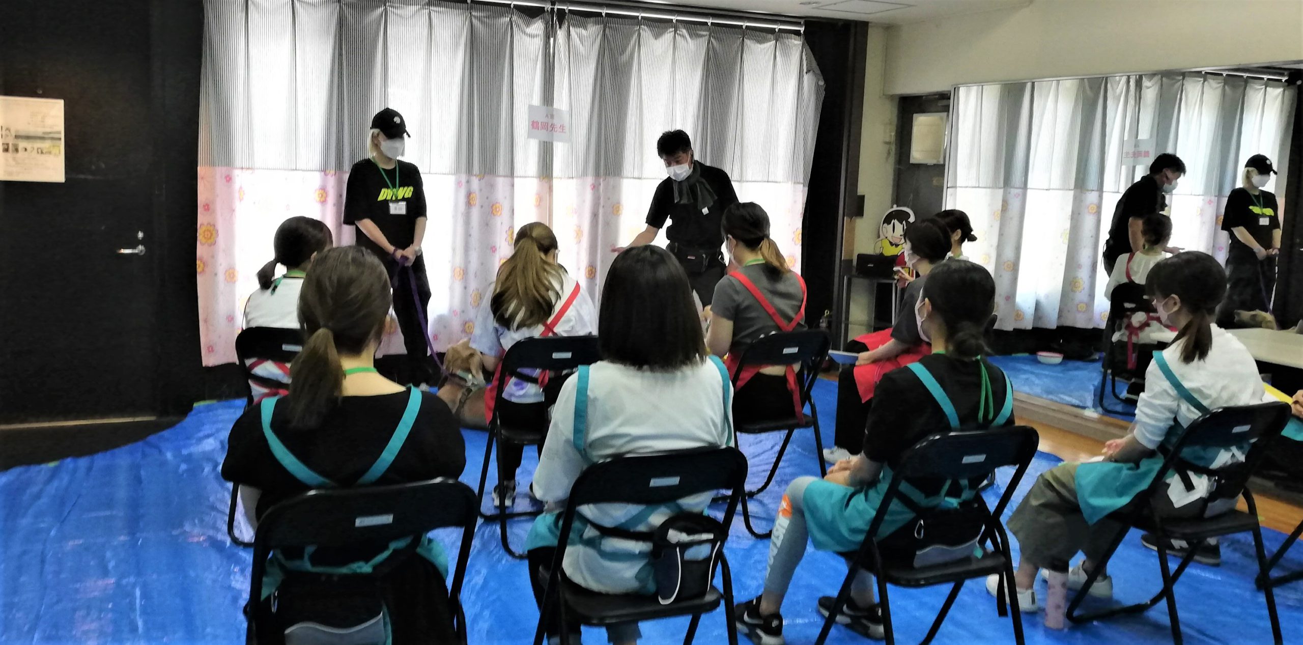 ワンちゃん達と生徒さんの熱中症には気を付けつつ、実習を行っております。