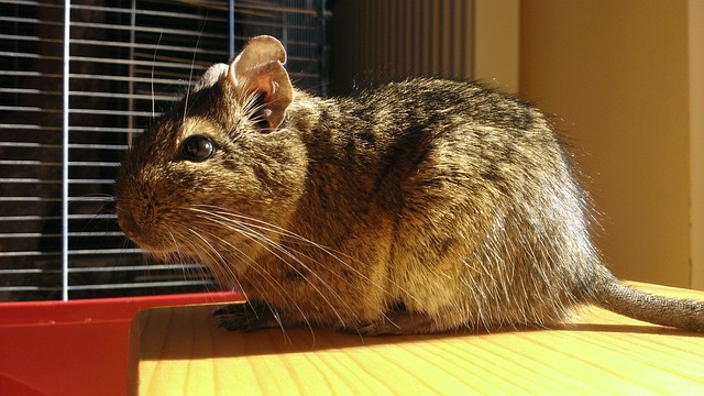 活動的なので、十分な広さと高さのあるケージが好ましいです。中には止まり木やかじり木、巣箱などを用意しましょう。デグーは砂浴びをするので、スペース的に可能であれば砂浴び用の砂も入れておきましょう。爪は自分で齧るので爪切りは必要はありません。フードとしてチモシーやアルファルファなどの牧草の他、ペレット(専用ペレットが入手できない場合はモルモット用などで代用)などを与えると良いでしょう。抱き上げるときは両手で包み込むようにし、首や尾は持たないようご注意ください。