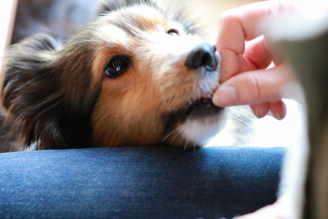 もちろん、犬の世界に「お箸」はありませんので、ダイレクトに口から食べることになるわけですが、それでも人がペットにおやつをあげるときに、いちいち指まで咬まれたり、ガッツいて歯があたってしまっては、好ましいコミュニケーションをとることができません。