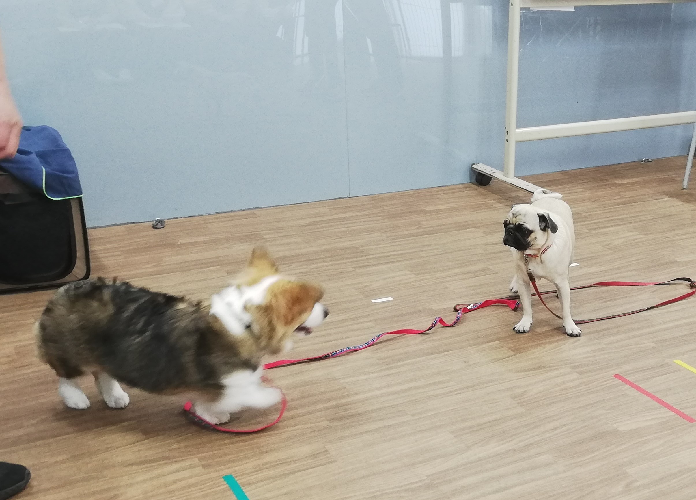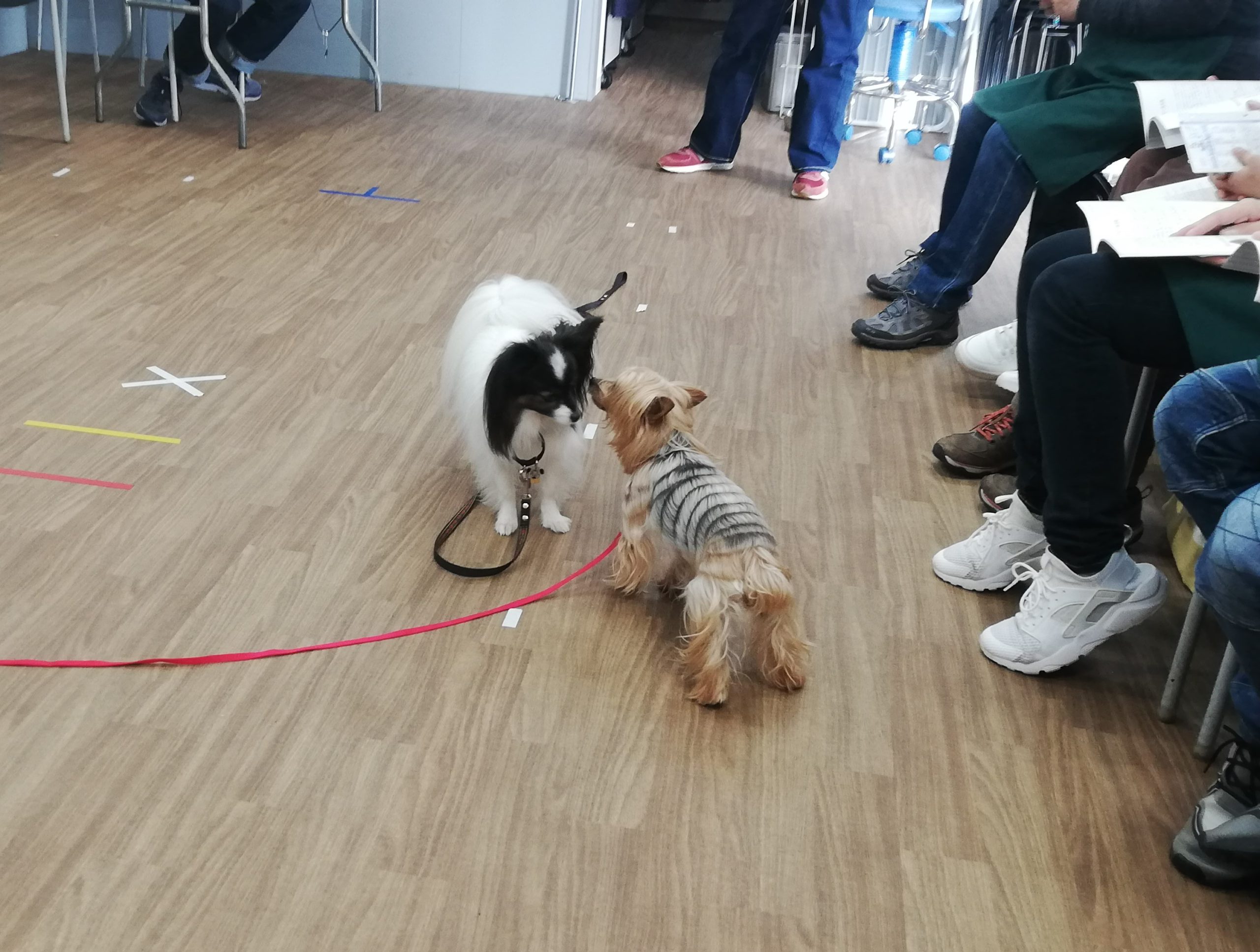 コーギー君の他にも、パグやパピヨン、ヨークシャテリアの親子が協力してくださり、賑やかな実習となりました。