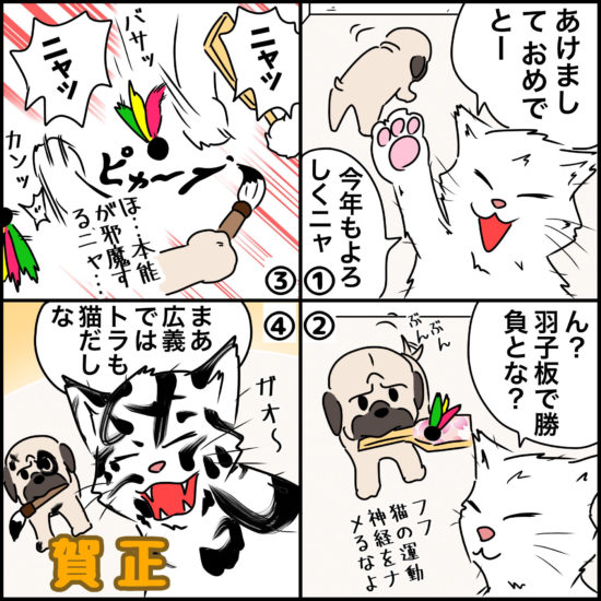 ペット四コマ漫画で登場するキャラクターを用いた漫画の年賀状。