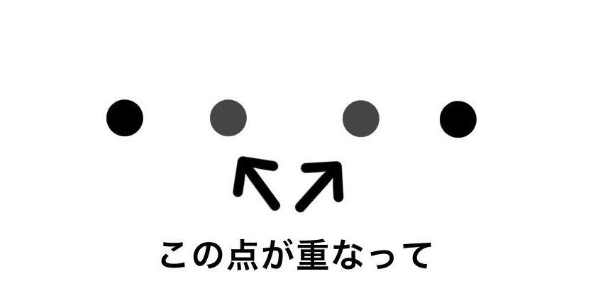 すると、下のように点がぼやけて4点に見えませんか?