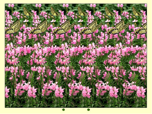 そして、目を寄せて二つの絵をぼかし、点が2点から3点になるように、真ん中にぼやけた絵を重ねて3枚になるように調整します。