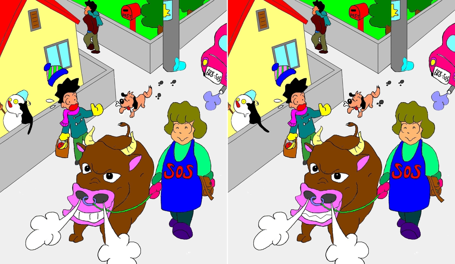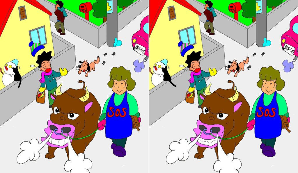 いずれも『間違い探し』をテーマにした年賀状となっていますが、こうした「間違い探し」を右見て左見て・・ここが違うぞ・・あと何個だ・・?なんてちまちま時間をかけることなく、一瞬で魔法のように見つけることができるのです。そう、マジカルアイならね。
