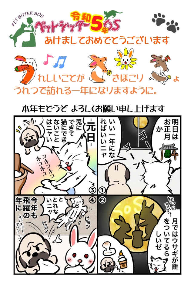 本年もどうぞ、ペットシッターSOSをよろしくお願い申し上げます。