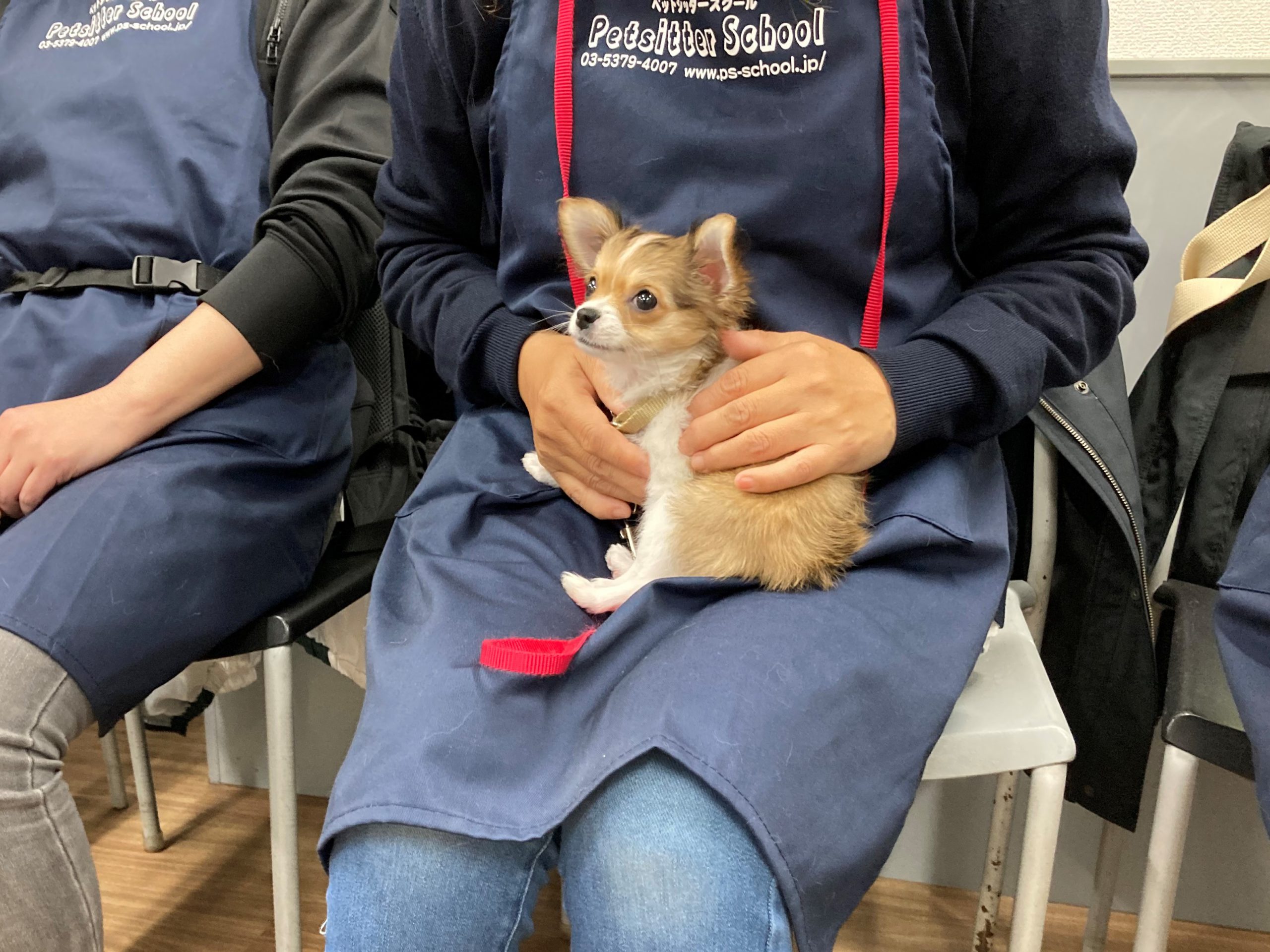 授業では、パピーの抱き方や、物への慣らし方などを学びました。