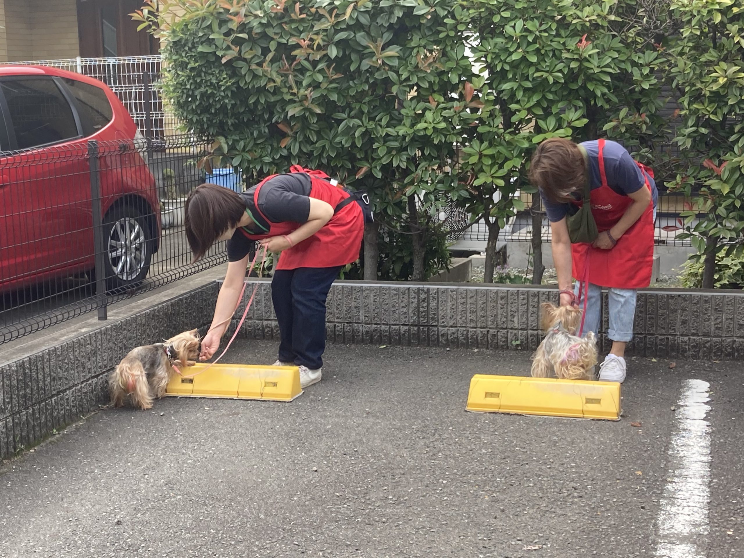 外へ散歩にも行き、外にある物や音にもしっかり慣れる練習を行いました。