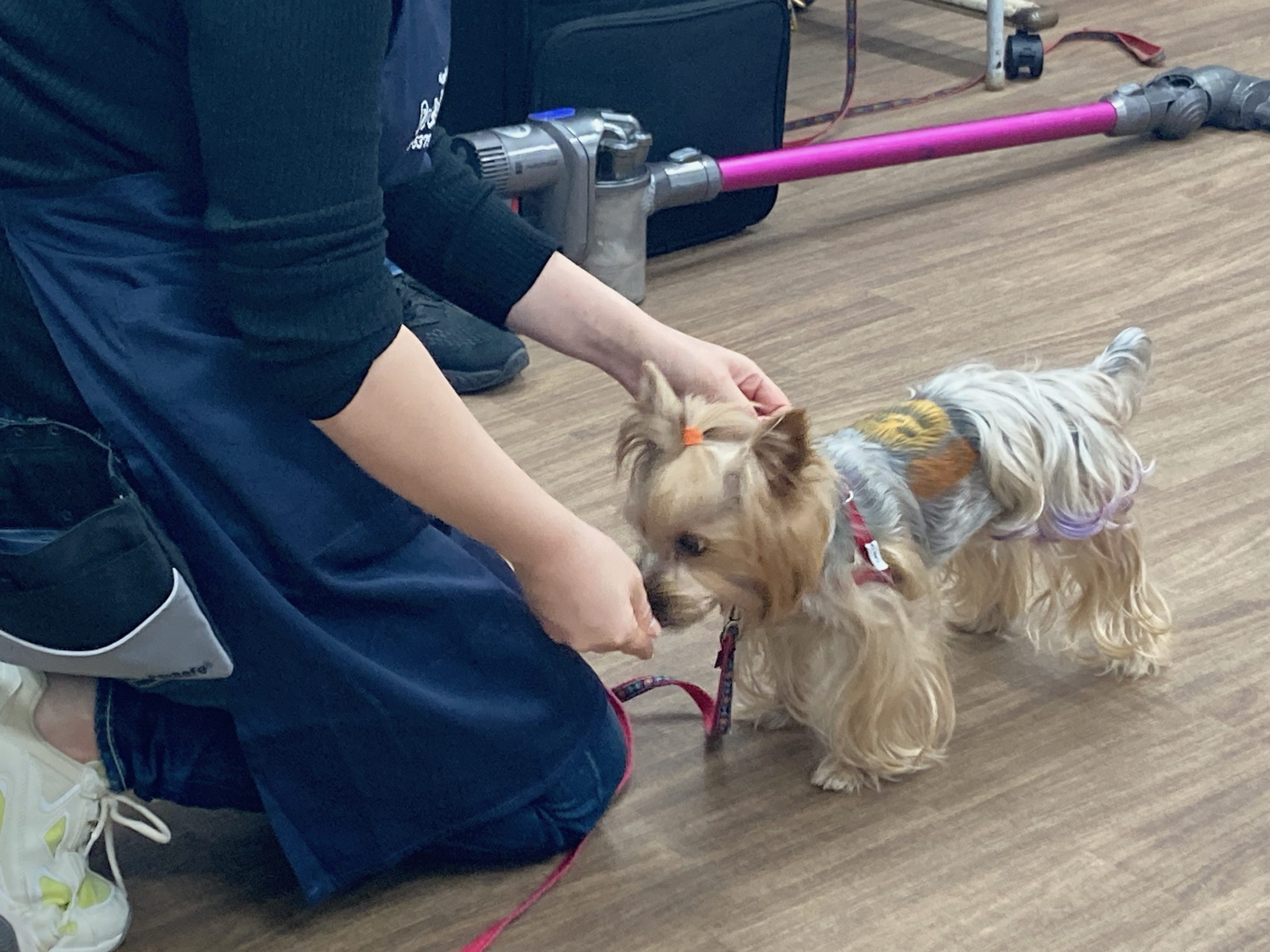 まずは室内でワンちゃんたちにも協力してもらい、パピーに対する接し方などを教わっていきます。